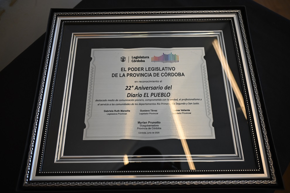 A través de una iniciativa de los legisladores Ruth Mansilla, Lucas Valiente y Gustavo Tévez, la Legislatura de Córdoba expresó su beneplácito en conmemoración del 22° aniversario de la creación de El Diario del Pueblo, fundado el 7 de junio de 2003 en la localidad de Río Primero.