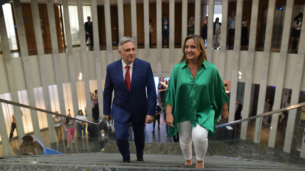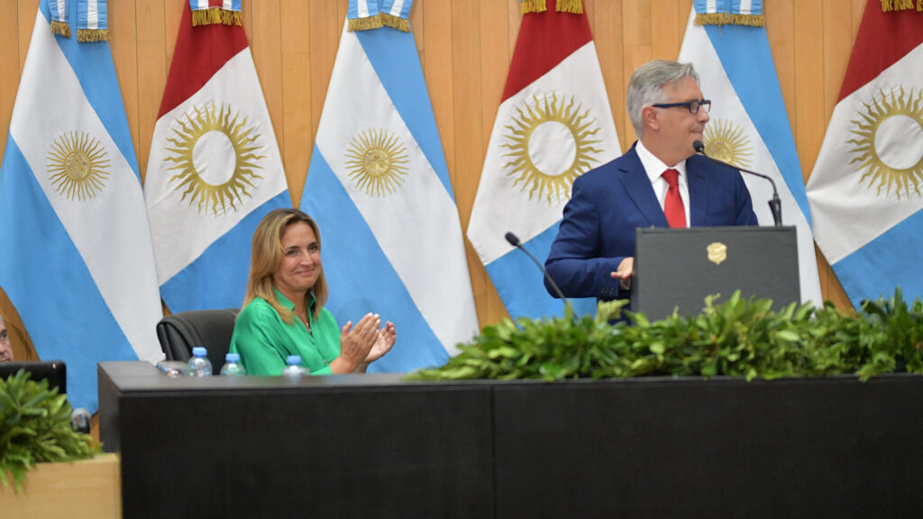 El gobernador Martín Llaryora inauguró este jueves el 146° período de sesiones ordinarias de la Legislatura de Córdoba, donde fue recibido por la vicegobernadora Myrian Prunotto.