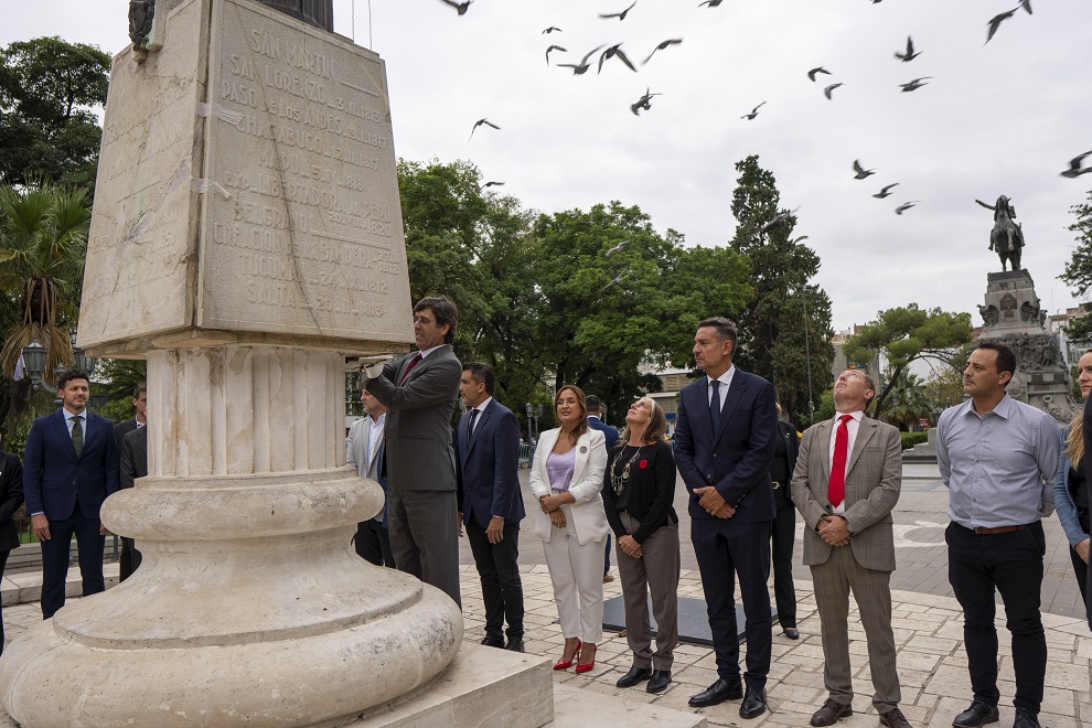 Previo a la realización de la sesión especial en la Legislatura Histórica, Prunotto participó en un acto en la plaza San Martín junto a los distintos presidentes de bloques de la Unicameral, en el que se izó la Bandera argentina.