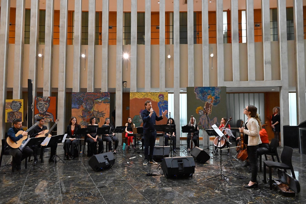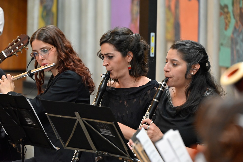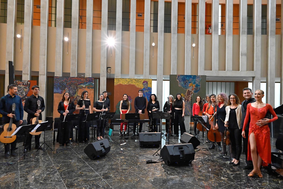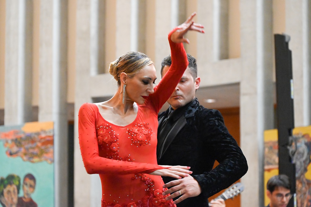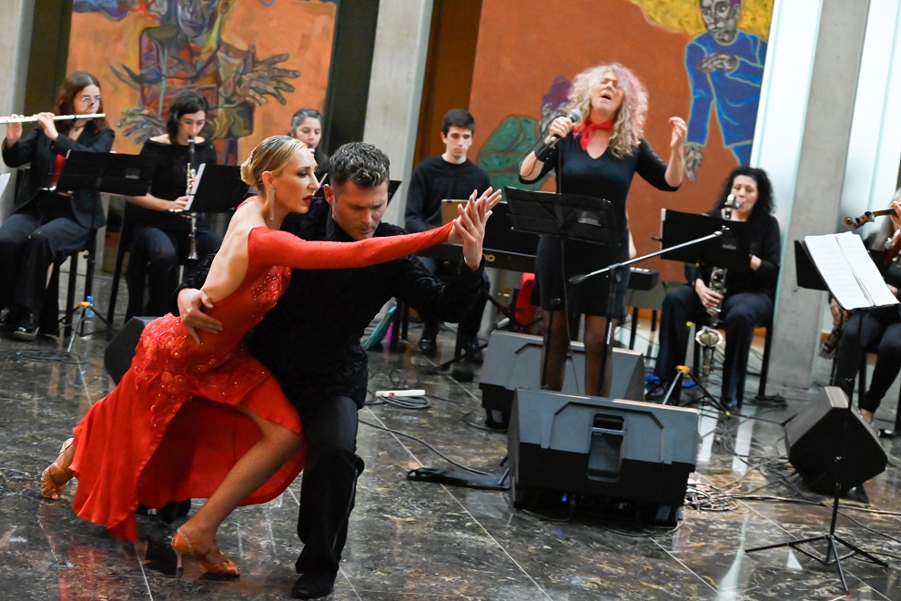 Durante el evento, las interpretaciones de los solistas Florencia Straub, Fabián Colina y Laura Bértora, acompañados por la orquesta, llenaron el hall tangos, mientras los bailarines Eduardo Charrete y Natalia Devigile dibujaron su esencia en cada movimiento.