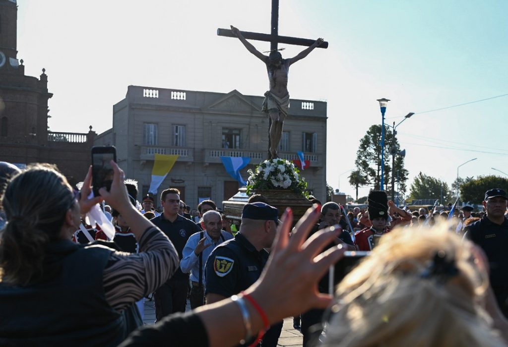 En la ceremonia, estuvo acompañada por el Intendente local Jorge Grazziano, la legisladora departamental Graciela Bisotto, intendentes de la región, autoridades municipales, militares, policiales y eclesiásticas; vecinos, peregrinos y devotos del Cristo de la Buena Muerte.