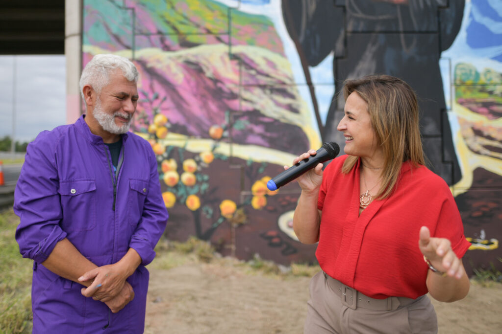 La ceremonia consistió en la inauguración de un mural ubicado en el límite entre las ciudades de Córdoba y Estación Juárez Celman, obra del reconocido artista Ariel Ocampo.