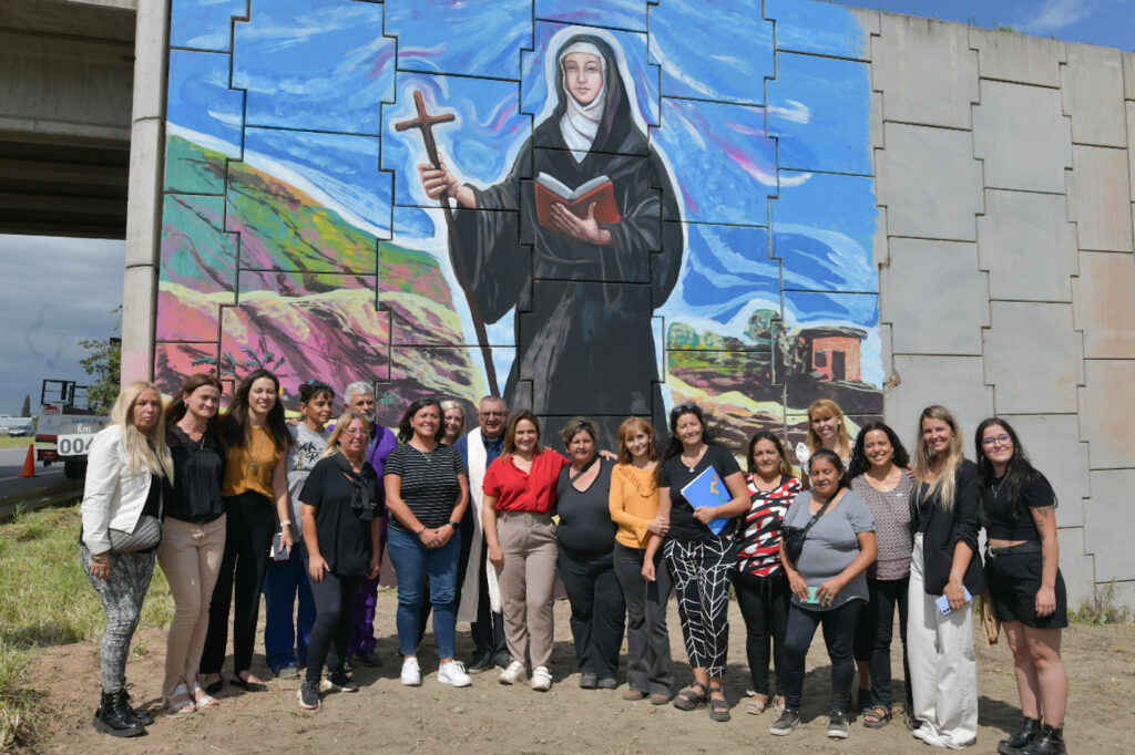 El estupendo mural se encuentra en uno de los puentes de la variante Juárez Celman de la ruta nacional 9. El artista representó a Mamá Antula transitando a pie y descalza su derrotero por nuestra zona, para dejar a su paso huellas de las que brota el legado que llegó hasta nuestros días.