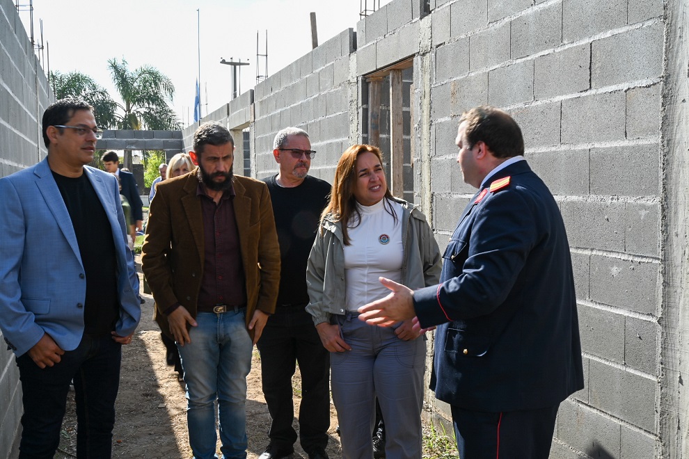 Durante la visita, junto al presidente del cuerpo de Bomberos, Duilio Claudio Diyorio, y demás autoridades locales y provinciales, se interiorizó sobre los avances de la obra que permitirá mejorar las condiciones de trabajo y operatividad de los servidores públicos.