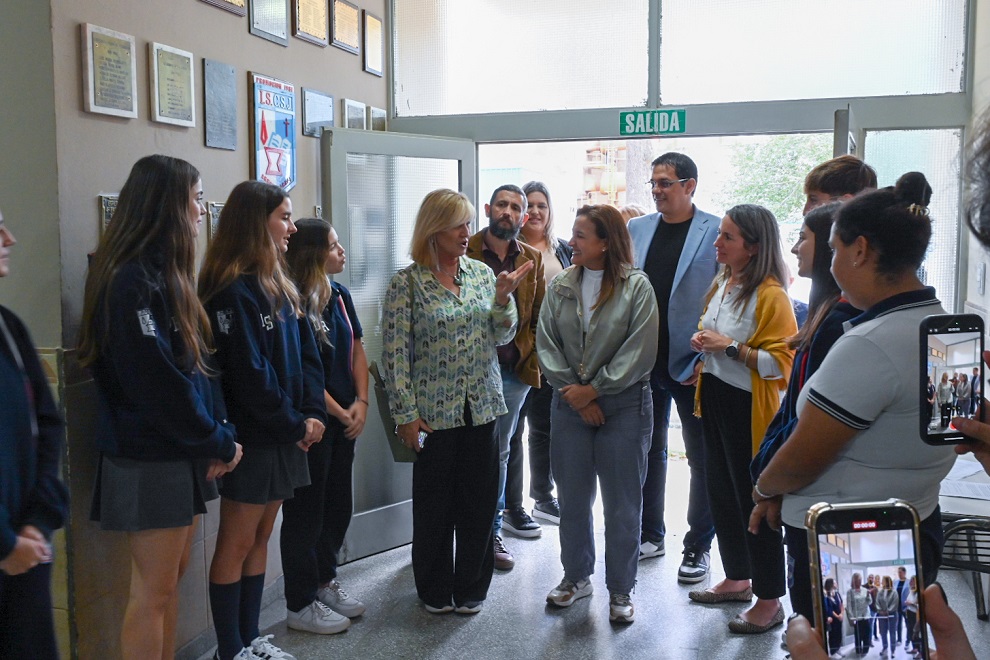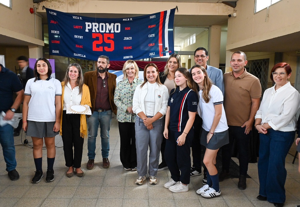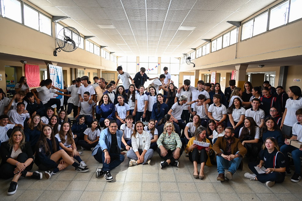 Posteriormente, la vicegobernadora se trasladó al Instituto Secundario Privado San José, donde fue recibida por autoridades de la institución, docentes y representantes del Centro de Estudiantes. Allí participó de un encuentro con jóvenes del último año, quienes le realizaron una entrevista abierta sobre temas vinculados a la educación, el rol de los jóvenes en la sociedad y el futuro de la provincia.