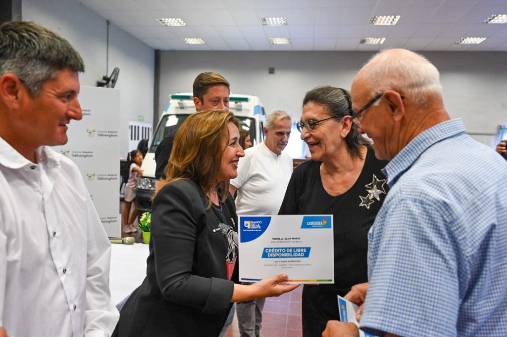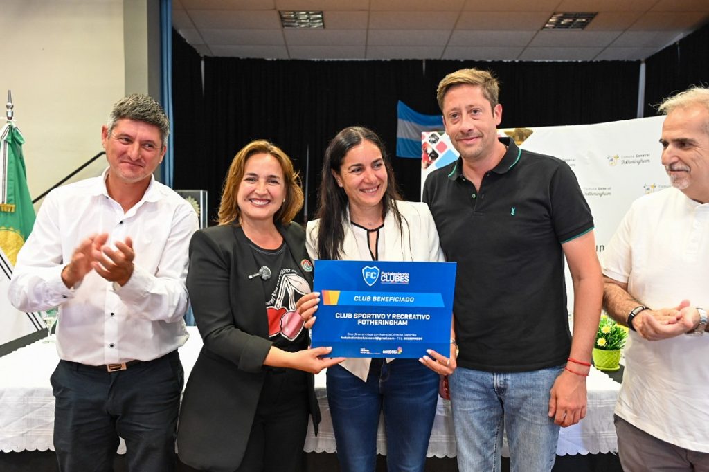 En su visita a esa localidad del departamento Tercero Arriba, Prunoto entregó escrituras, créditos del Banco de la Gente y un aporte del gobierno provincial de cinco millones de pesos al Club Sportivo y Recreativo Fotheringam, fondos que recibió la presidenta de la institución, María Luisa Lafuente.