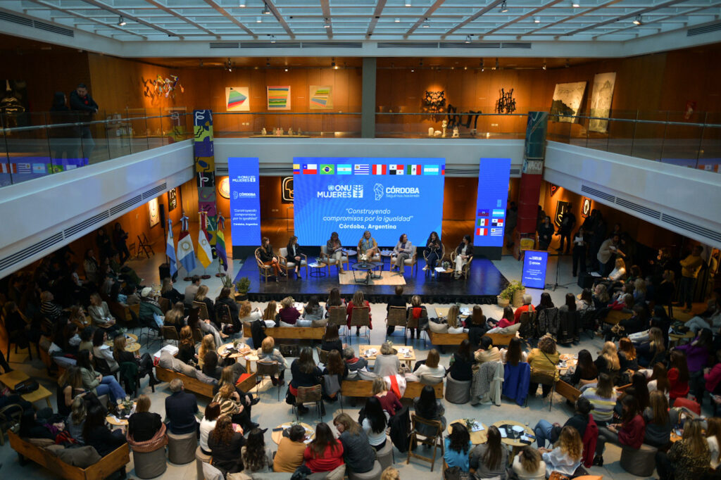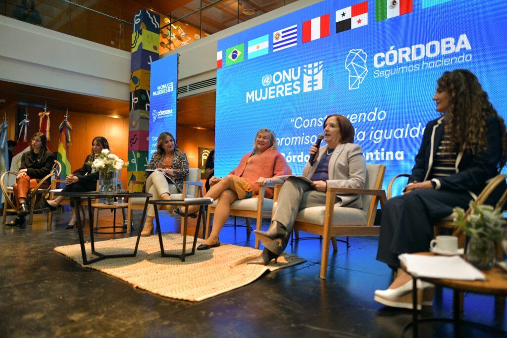 La delegación encabezada por María Noel Vaeza, directora ejecutiva compartió este lunes una mesa redonda titulada: «Diálogos Suprarregionales: Construyendo compromisos por la Igualdad», realizada en el Museo Metropolitano de Arte Urbano de Plaza España. Disertaron Prunotto, la senadora por Córdoba, Alejandra Vigo, la secretaria de la Mujer, Claudia Martínez y Vaenza.